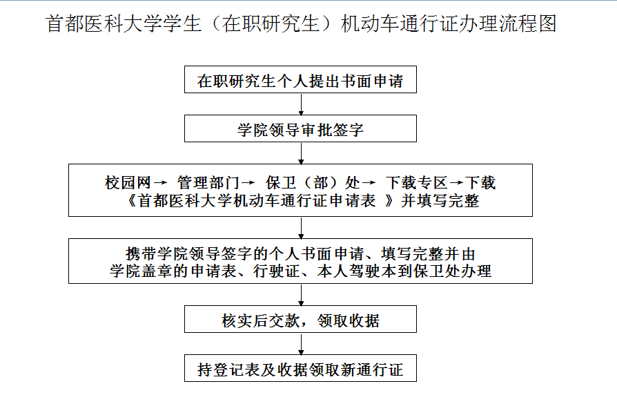 首都医科大学学生(在职研究生)机动车通行证办理流程图