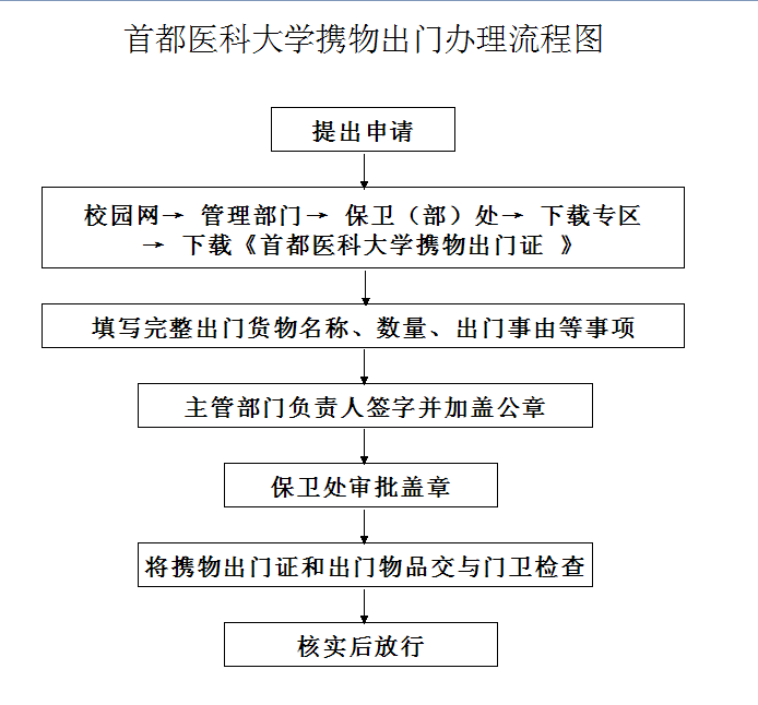 首都医科大学携物出门办理流程图