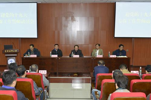 保卫处处长从林在动员部署中强调:党的“十九大”安保工作已进入最后冲刺阶段,责任重大,使命光荣,全体安保人员特别要做到:强化意识,勇于担当;善始善终,毫不松懈;全面防控,关注重点;落实责任,注重细节;快速反应,果断处置。各有关部门及人员要加强沟通,协同配合,确保“十九大”期间学校安全稳定。